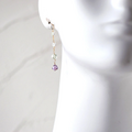 玻璃(はり)の雫 ― Prasiolite & Pink Amethyst ステーション ピアス 14kgf