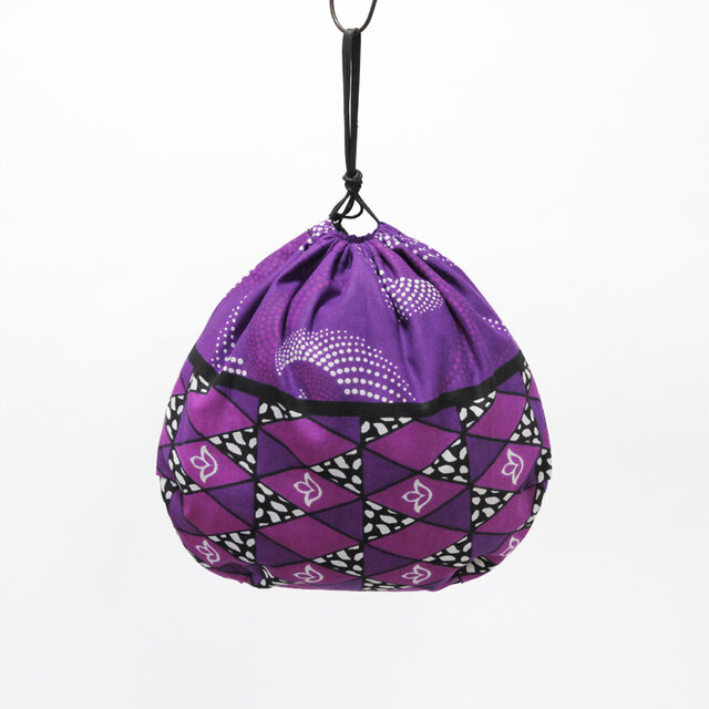 コロンとした形がかわいい、カンガの大きな巾着。