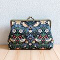 V&Aウィリアムモリス がま口大きめポーチ お薬手帳・通帳ケース 16.5cm口金 いちご泥棒 ブラック 640