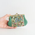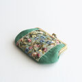 インド刺繍リボンをあしらった小回りの利くサイズのがま口ポーチ