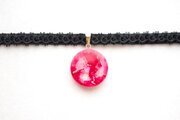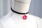 【受注製作】レジンアート ラウンドモチーフとタティングレースとベルベットリボンのチョーカー〈紅き月〉