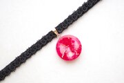真紅と白が滲みあい生まれる模様が大理石のようにも、月のようにも見えるレジンを、ベルベットリボンにタティングレースで装飾を施したチョーカーに仕上げました。