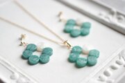 光沢のあるグリーンが顔周りを明るく照らすピアスです。