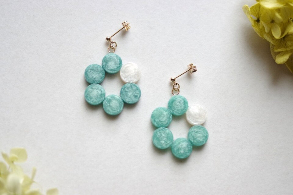 レジンアート 丸を連ねてピアス〈若芝萌ゆる〉