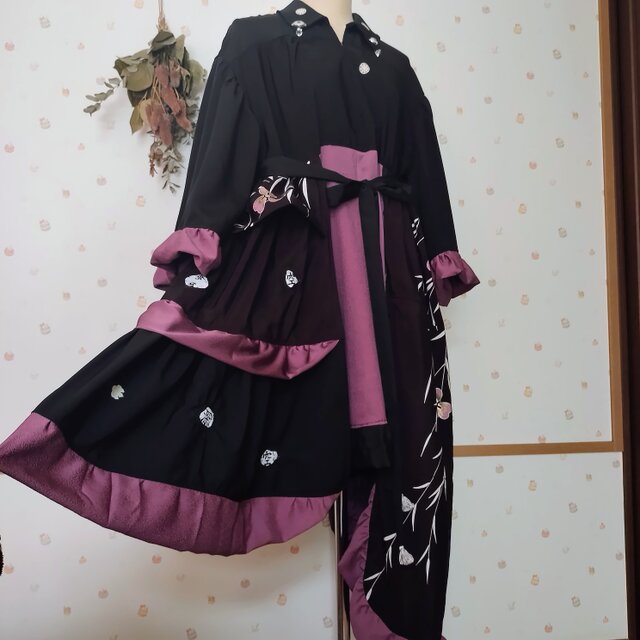 見頃、スカートは透け感のない薄手シルクのお着物使用。