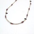 ヴィンテージビーズと天然石をリズミカルに配したデザインで、さりげないアクセントになる深みのあるカラーは、シンプルなトップスにも自然に溶け込みます。