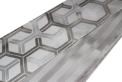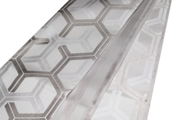 【A面:立体亀甲】視線を奪う、3Dエフェクトの奥行き 伝統的な吉祥文様である亀甲を、パース(遠近法)を効かせた立体的なデザインに仕上げました。織組織を細かく変化させることで、光を受けるたびに奥行きが生まれ、まるで生地の中から模様が浮かび上がってくるような、圧倒的な存在感を放ちます。