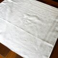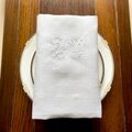 大判のテーブルナプキン、モノグラム刺繍入り。