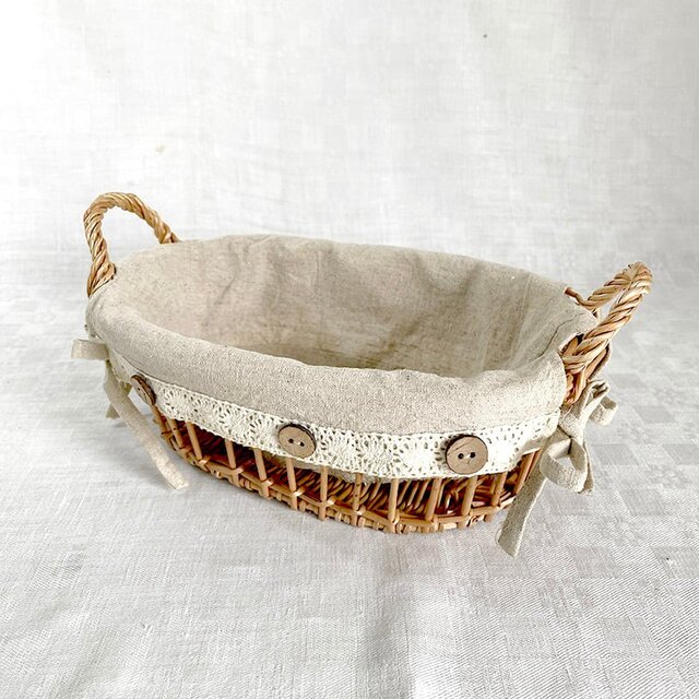 布付きかご バスケット フルーツ・パン入れ 小物入れ リネン付き パニエ 12otdg29