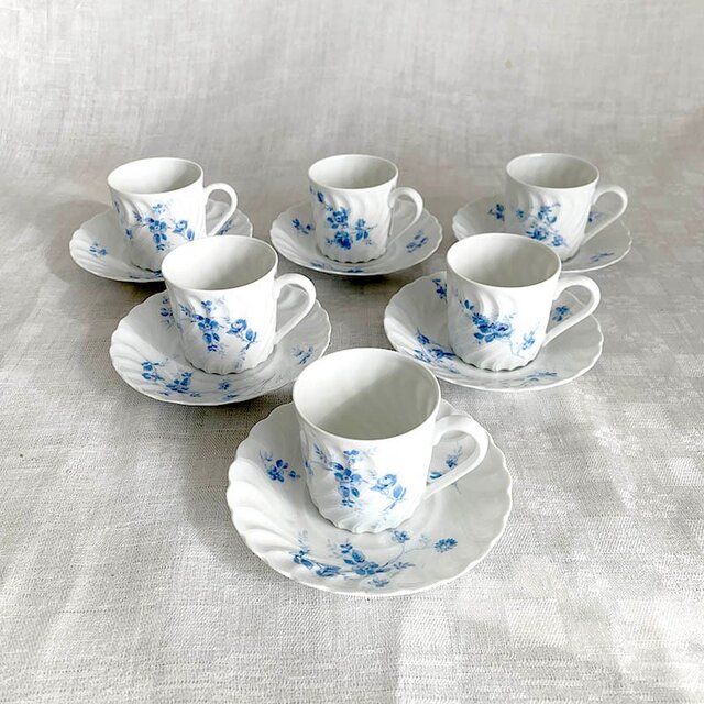 リモージュ Tharaud コーヒーカップ ソーサー ブルー花模様