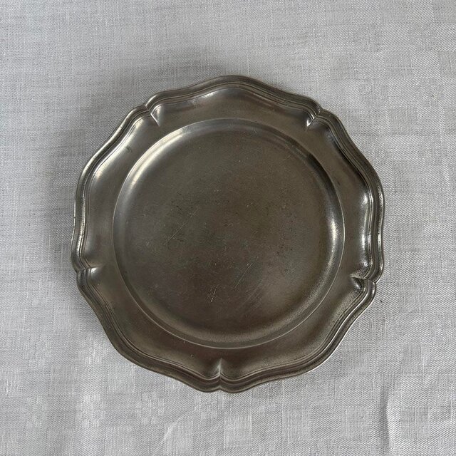 花型のリムが美しい錫のプレートです。