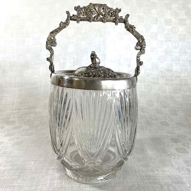 ロカイユ装飾の取手が豪華なビスケットジャーです。