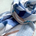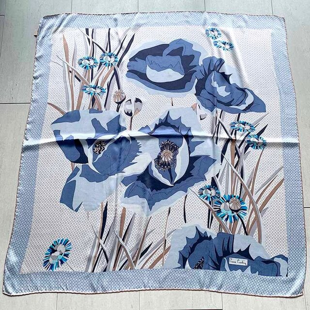 スカーフ ピエール・カルダン 青系レトロ大柄 シルクスカーフ 12accs17