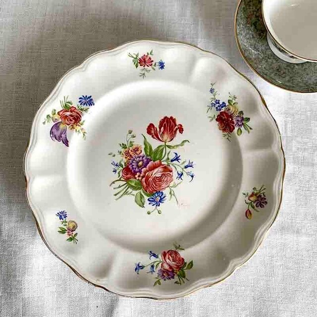 リュネヴィル KG Luneville ブーケ柄の脚付きケーキ皿 コンポティエ 12twcm21