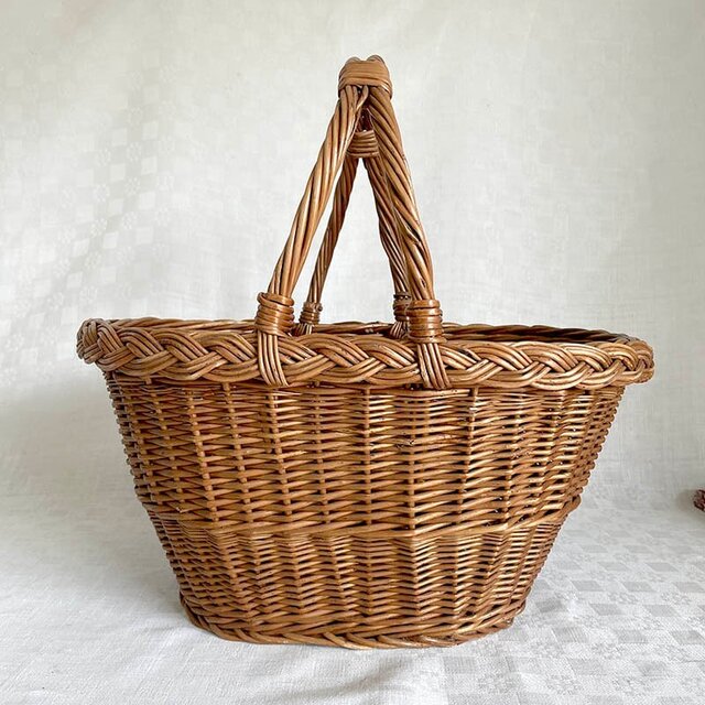 フランス蚤の市からやってきた、丁寧に編まれた大きめのパニエ(バスケット)です。