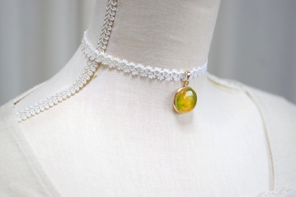 【受注製作】レジンアート ラウンドモチーフとタティングレースとサテンリボンのチョーカー〈ミモザ〉