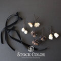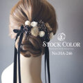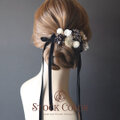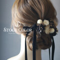 ホワイトゴールドとブラックを組み合わせた大人可愛いヘアパーツセット。リボンは高級感のある両面スエードを使用♪