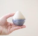 上には艶やかな白い釉薬を、下には明け方の空のようなブルーの釉薬をかけ分けています。