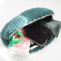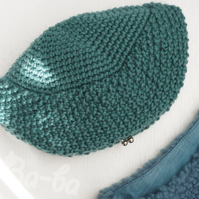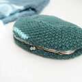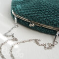 くすんだグリーンの毛糸を鹿の子編みし、シンプルな口金を合わせました。