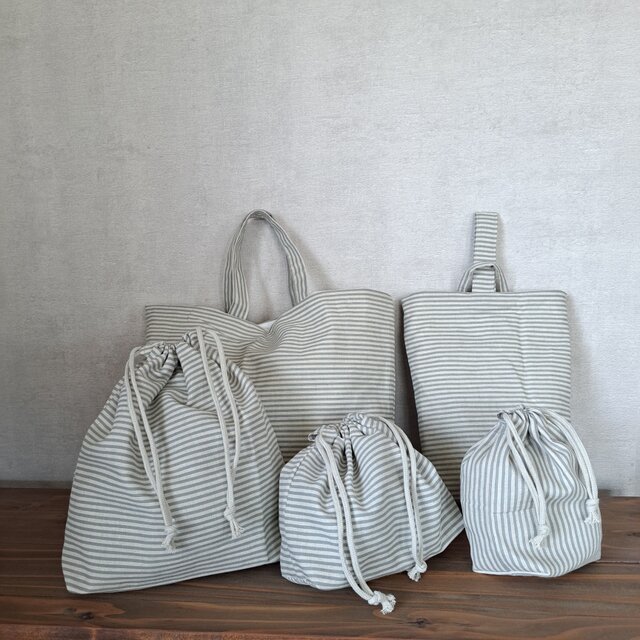 グレーストライプの入園バッグ5点セットが出来上がりました!
