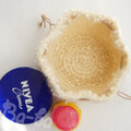 ネップヤーンを編み上げ巾着にしました。