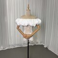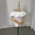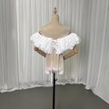 取り外しオフショルダー オフホワイト ジャガード生地 ラッフルフリル 編み上げ 前撮り