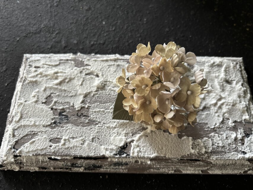 シャビーな雰囲気となるようお作りしましたあじさいコサージュは、裏側にブローチピンをお付けしております。