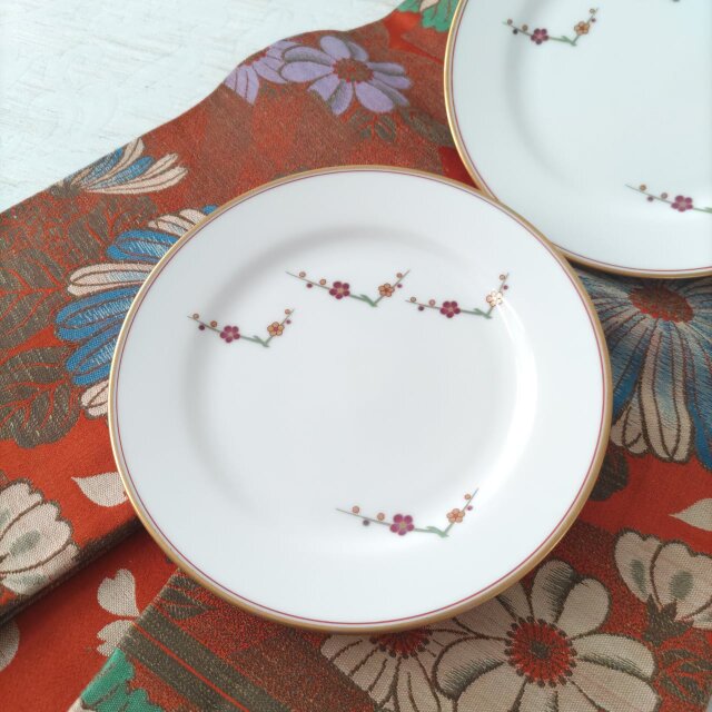 香蘭社|KORANSHA|紅梅|梅花|金彩|平皿|有田焼|日本