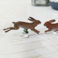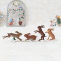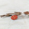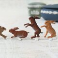 小さいながらも躍動感あふれる野うさぎのすず飾り。落ち着いたブラウンのグラデーションで彩色されており、主張し過ぎず、お部屋の雰囲気に馴染みます。こちらは新品、スタンドタイプの両面彩色です。