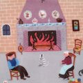暖炉を前に、くつろぐ老夫婦と動物たち。眺めるたびに、老後はこんな穏やかな暮らしがしてみたいと思います。暖炉の絵柄は、シリーズの中でも特に人気があるデザインになります。