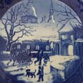 絵柄は、デンマークで初めて室内にクリスマスツリーが飾られた歴史を持つ「ホルスタイン宮殿(マナーハウス)」がモチーフ。雪景色の中、そりに積んだモミの木を運び、宮殿へ向かう家族の姿が、深いコバルトブルーの濃淡で情緒豊かに描かれています。家族の温かい愛とクリスマスの喜びが伝わるデザインです。