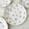 パンジー、ローズヒップ、忘れな草など、ヨーロッパの庭園から摘み取ったような、手描き風の愛らしい花々がプレートを彩ります。