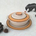 一人用蓋つきキャセロールとプレートのセット。プレートは単体としてご使用いただけます。