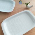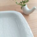 こちらは使用品になり、スクラッチの小傷があります。目立つほどではないため、コンディションとしては良好です。重みがあり、しっかりとしたつくりがうかがえます。実用性と美しさを兼ね備えた、白山陶器らしいお皿です。