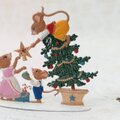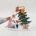クリスマスツリーの飾りつけをするマウスの家族が描かれています。