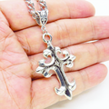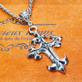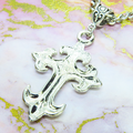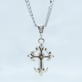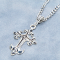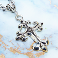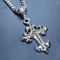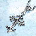 深みのあるアンティークシルバーカラーをまとい、優美な曲線を描くゴシック調のデザインクロスを主役にしたペンダントです