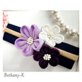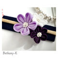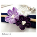 お食い初めや初節句に◆小花が可愛い和モダン髪飾り(下がり無し)◆白×白藤×菫色のママでも簡単につけられるつまみ細工