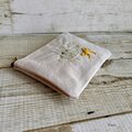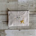 大人かわいい手刺繍猫ちゃんとミモザのフラットポーチ(ポケットティッシュサイズ) 国産帆布 コットン 小物入れ ギフト 春