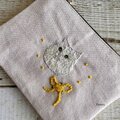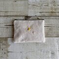 ひと針ひと針丁寧に手刺繍したフラットポーチです。