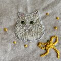 表面は、上質な国産帆布に猫ちゃんとミモザを手刺繍しました。
