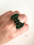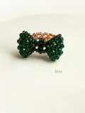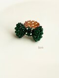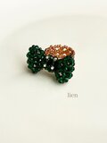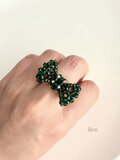 ガラスビーズや丸小ビーズを使って作ったリボンモチーフの指輪です。