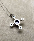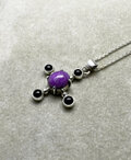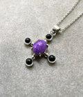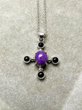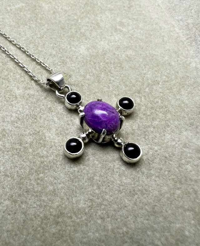 真ん中のスギライトは鮮やかで特徴的な紫。四方に黒いオニキスの入ったクロスペンダント。