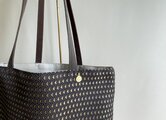 ANEMONEのシンプルバッグは持ち手が長すぎず、短すぎず、使い勝手が良いく、シンプルな形ですが、輸入ファブリックの存在感が魅力のモダンなバッグです