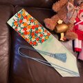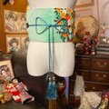 穏やかで知的な若草色の地に、刺繍で花々をあしらった、気品あふれるリメイクベルトです。普段使いのデニムスタイルをクラスアップさせる「外しのアイテム」としても優秀。淡いベージュの紐が、女性らしい柔らかな空気感を演出します。