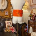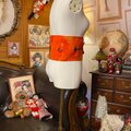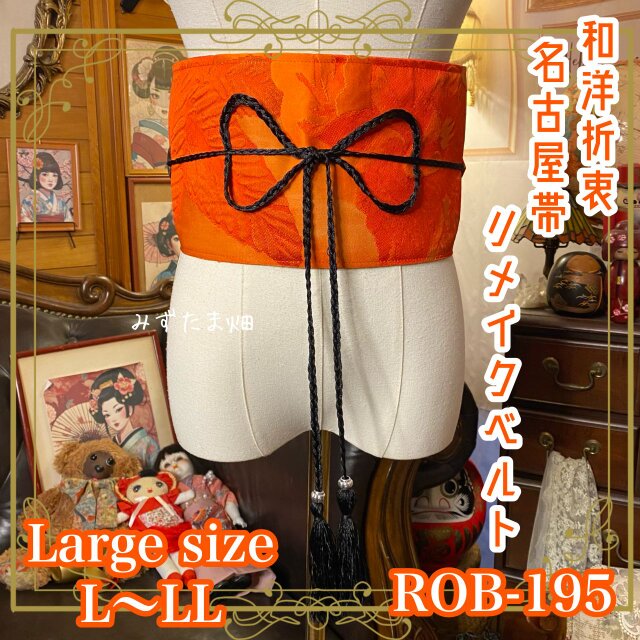 【名古屋帯 リメイク サッシュベルト 飾り帯 和洋折衷 ハンドメイド レトロ 古着 L〜LL対応 茜の情熱 × 麗しき菊花の円舞曲 ROB-195】