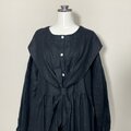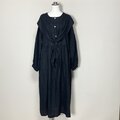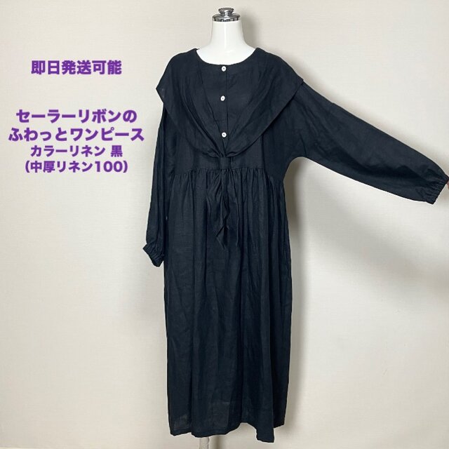 ★仕立て済み・即納品★セーラーりぼんのふわっとワンピース 長袖◆黒◆フリーサイズ(中厚、リネン100%)