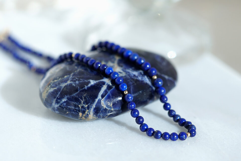 深い瑠璃色とその中に散りばめられたパイライトの煌きが魅力的なラピスラズリ。