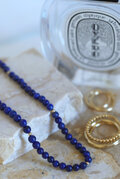 約4~4.5mmの程よいサイズ感のラピスラズリを使用し、1本でも重ね付けでもお楽しみいただきやすいデザインを心掛けました。