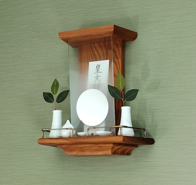 <特許取得>参拝者が神鏡に映る自身の姿を見ることができる神棚です。