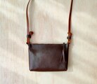 < 手縫いで仕立てました、ミニマムデザインのレザーショルダーバッグです>
